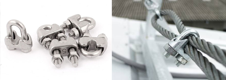 Poin selanjutnya adalah kabel sling baja dengan mata kait wire clip. Kabel sling baja jenis ini atau tipe ini adalah kabel sling yang mata kaitnya diikat dengan wire clip. Wire clip adalah alat yang dapat mengikat benda yang masuk kedalamnya dengan mengencangkan kedua baut yang ada padanya. Untuk lebih jelasnya dapat anda lihat pada gambar dibawah ini :