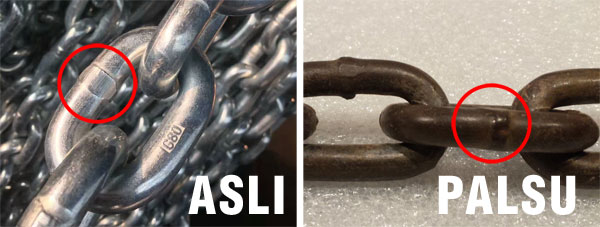 - Sambungan las setiap mata rantainya haruslah halus dan juga tebal, jangan cuma totol-totol atau tipis ga tebel gitu. Karena sambungan las pada sebuah mata rantai sangat penting dan sangat mempengaruhi ketahanannya.